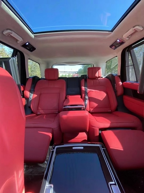 21款路虎揽胜行政创世加长版 内饰布局和控制面板跟路虎星脉 (配置|询价)很相似,仪表盘采用模仿仪表,装备全新液晶屏,可以表现更多信息,分辨率也更高,中控台大尺寸触摸屏更具科技感。彩用了星脉的Touch Pro Duo双屏触控作风,科技感更强。座椅方面,路虎揽胜座椅十分豪华,皮革做工都十分不错,换代后的揽胜愈加风雅。路虎揽胜后排座椅装备两个座椅,还装备了中央扶手以及腿垫,乘坐舒服性比较好。还装备了后排文娱系统和独立空调。