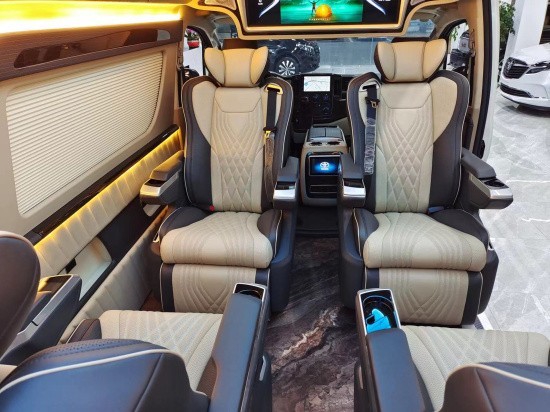 2022款丰田海狮的航空座椅有着超乎寻常的尊贵感和舒适感,侧壁更换意大利顶级真皮包袱手感极佳,侧壁菱形格的设计使整车层次分明立体感更强。侧窗豪华电动窗帘,面料阻燃隔热、隔光、隔音。顶棚更换意大利顶级麂皮绒零污染零伤害的环保材质,搭配桃木件及氛围灯的组合,营造出温馨舒适的乘车环境。