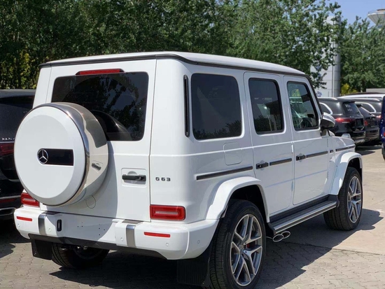 21款奔驰G (配置|询价)63内饰方面,新款奔驰G63保留了新G500的整体设计,除配色差异外,新车还换装了全新造型的平底式AMG运动方向盘,其两侧配以打孔皮质包裹,下部镀铬装饰的造型也与新G500明显不同,看上去十分战斗。此外,全液晶仪表盘+中控大屏的双12.3英寸屏幕设计在新车上也没有缺席,营造出了浓郁的科技感。