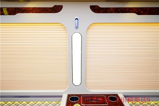 除了座椅的设计之外,丰田考斯特改装商务车的独特还体现在内饰的其他方面的设计上,车内的多媒体系统以及办公桌的设计也是让我们感到惊叹的地方,丰田考斯特最新推出了多媒体显示屏和酒柜雨伞柜相组合的办公桌,白色的桌面,以金属亮条包裹桌角而且桌角的设计采用流线型一定的弧度的设计不仅仅美观而且更加安全。车内壁也可以采用真皮包覆在增加车内美观的同时也可以起到很好的隔音效果。这样的设计就可以看出丰田考斯特改装商务车独特的创新理念。
