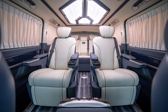 这款奔驰威霆7座商务车的车窗还特意设计隐私窗帘,给老板一个更安全私密的环境,后备厢空间也格外宽敞。