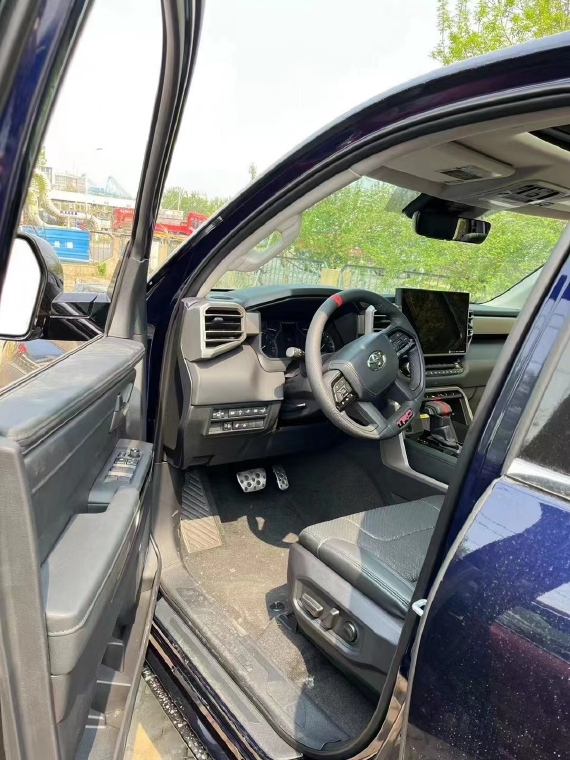 内饰方面,新车的设计刷新了我对日系车的印象,配全液晶仪表+大尺寸的悬浮式中控大屏,科技感十足;而且还有运动感十足的四幅式方向盘、推进式换挡杆以及活力四射的双色内饰搭配,很难想象这是一辆硬派越野皮卡。另外,新车将会配备TRD Pro座椅刺绣。