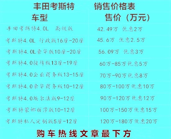丰田考斯特销售热线:13811284111 魏先生 同微信