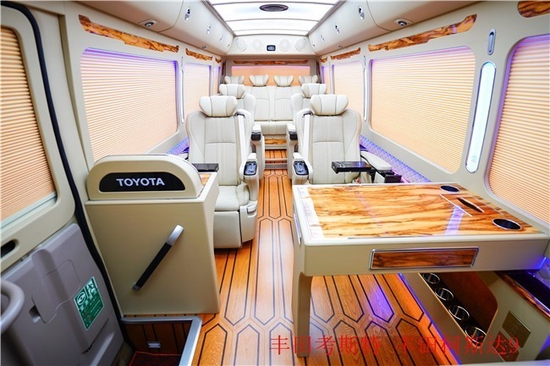 丰田考斯特12座与考斯特16座改装在内饰的改装上的相同之处也有很多,丰田考斯特改装商务车在内饰上的改装项目有很多。座椅,地毯,窗帘,冰箱,隔断,影音系统,办公桌,席等等,内饰上的每一步哦我们都可以根据自己的需要进行设计,首先从内饰座椅的改装上来说,丰田考斯特改装商务车丰田考斯特改装商务车在改装的不同之处就是他是一个可以根据你自己的心意去改变的装置,你可以根据自己的需要去选择座椅的数量,选择是采用普通的织物座椅,还是选择豪华的真皮座椅。同样我们还可以安装沙发折叠床,打造属于我们自己的房车。丰田考斯特12座和考斯特17座均可以增加隔断,我们也可以发现主副驾驶席是可以和乘客车厢之间用隔断隔开的,在隔断们可以安装大屏幕液晶显示屏。