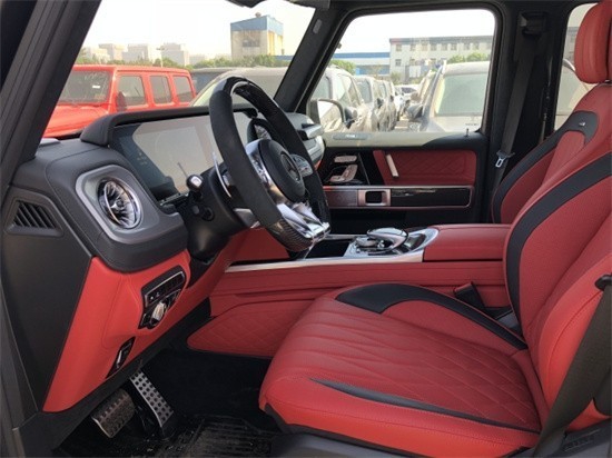 奔驰G63 (配置|询价)可选配置包:暗夜包:熏黑前杠,熏黑灯,座椅舒适包:前排座椅通风,前排座椅按摩,多仿型动态座椅,独家内饰包:菱形格座椅,单选:22轮,碳纤维内饰,碳纤维方向盘,方向盘加热, 。