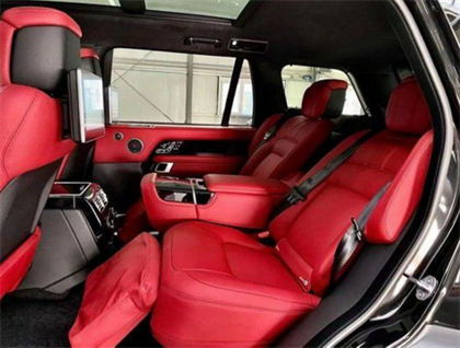 21款路虎揽胜创世加长真皮座椅很柔软,乘坐舒适,前后排座椅都装备了加热和通风功能。路虎揽胜行政版控制台顶端以及方向盘以牛津皮革包裹,无论是视觉效果还是质感都无与伦比。中央显示屏双画面技术可使驾驶者和乘客同时观看不同的画面。后排座椅还支持靠背角度调整功能,让乘坐在SUV中的乘客也能享受到轿车才独有的豪华配置。