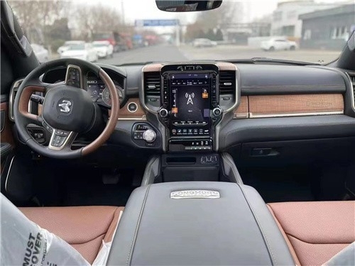 道奇公羊真皮座椅摸起来十分舒适和细腻,很多细节地方也做得相当精致,后排座椅则有通风和加热设备,并且配备了一个小型存储工具箱,联系电话:18812637416刘经理 (同号微信)可见此款车的设置是十分人性化。款道奇公羊中控台设计看上去比较死板,但丰富的配置会让你不由得为其称赞。RAM 采用了四幅式多功能真皮方向盘,功能键可以控制音频系统。