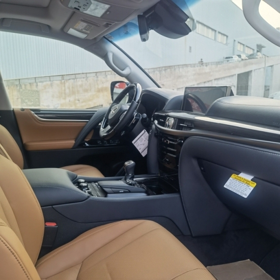 21款雷克萨斯LX570全新设计的多功能方向盘、中控台、车门内侧均由真皮及珍贵实木内饰包裹,半苯胺高级真皮座椅给予乘客恰到好处的支撑和柔软舒适的触感。而水平式仪表盘设计,可以让驾驶者更清楚掌控车辆的位置与状态,提供道路与越野的操控感。12.3英寸超大液晶显示屏创下同级之最,分辨率达1280*480,新增的大尺寸全彩抬头显示器可分三列显示丰富信息,成为全系标配。