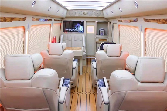 丰田考斯特改装在外观上为米黄金属色,丰田考斯特改装特意增加了车身彩线我们可以给全车装饰进口防爆膜,能够提高我们在行车中的安全系数。镀铬防蹭条,华通丰业既能够增加车身的美观又具有一定的安全作用。对于驾驶席以及副驾驶席的作为的改装上,我们可以选择加大加宽加厚增加扶手的改装方案或者加装豪华真皮座椅。