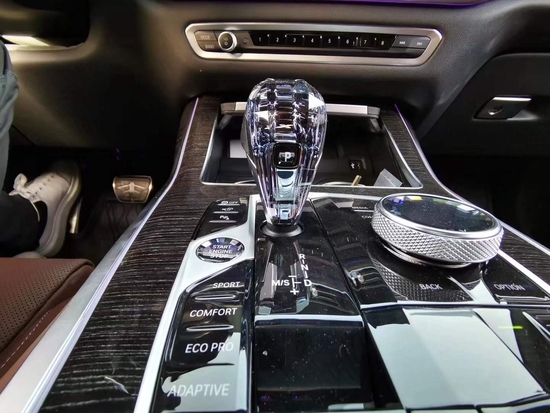 21款宝马X7中控台依旧是以驾驶者为中心进行设计和布局的,可见它并没有放弃操控性。内饰风格跟概念版也是大同小异,主要是细节方面有所不同。新车配备了科幻感十足的12.3英寸中控液晶屏和全液晶仪表。为了进一步凸显内部的奢华质感,电子档把采用了全新玻璃材质。