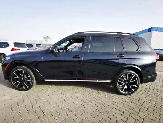21款宝马X7双肾式大尺寸前进气格栅,大灯的外部造型上面是更加的扁平化,内部的天使眼的大灯设计在设计上面是更加的抽象化和科技感,下方的保险杠以及整体的氛围营造也是在向着沉稳的方向过度的。