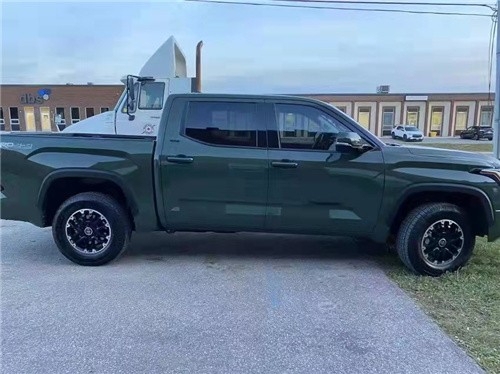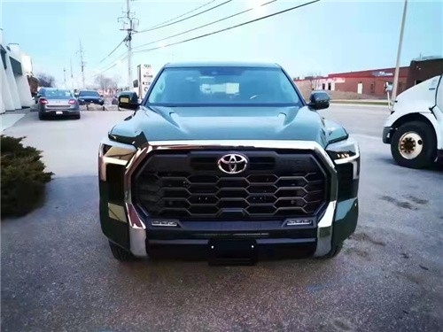丰田坦途3.5TT大灯采用了新造型设计,看上去有点像是“开眼角”一样,对比之前的灯腔来看也更加扁平化,辨识度会更突出一些。虽然我很喜欢这套新设计,对比目前国内能看到的坦途而言,更加夸张、个性,但在北美市场却并不讨喜,很多人认为这样的设计没有将它大车身的体量感营造出来。
