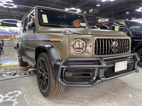 2021款奔驰G63硬朗的方盒子造型,没有多余的弧度、没有任何曲线,眼光所及满是直锋利的线条,就连车顶上的导雨沟槽,也是沿着车顶周围一圈,分外焊接上去的金属槽,车门搭钮更是绝不虚心,硬挺挺地屹立在门缝之外,外凸的轮拱、造型如同 梯形的引擎盖。