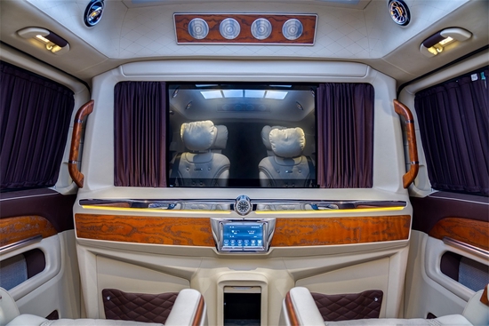 奔驰vs680商务车全隔断选择米咖内饰,奢华大空间配置超大屏幕的移动影院+12声道柏林之音享受,更满足移动出行的娱乐性的需求。