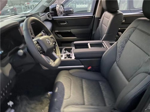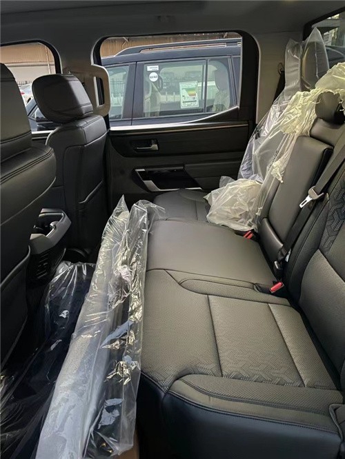 全新丰田坦途TRD版皮卡车内乘坐、后排座椅宽大,足以满足身高195cm的贵宾,第二排座椅可以完全折叠收起,为乘客提供更宽敞的腿部空间,已经达到了中大型车的水平,完全可以满足舒适乘坐的需求,部分特殊的装载给您的路途更添信心。