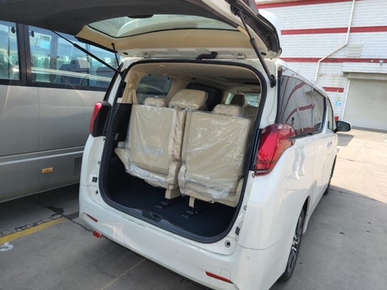 丰田埃尔法 (配置|询价)外观采用日本原装进口VELLFIRE (配置|询价)套件改装而成,双层蓝色三透镜大灯犀利透彻,时尚霸气宽大前中网及前原装进口立体大包围显得整体外观高大尚,神秘的三角隐私玻璃