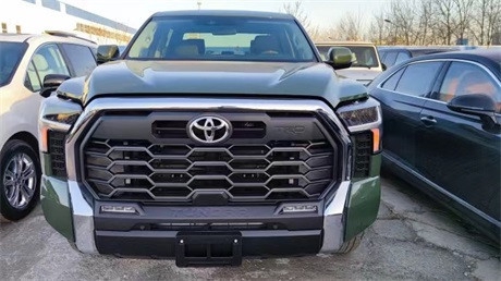 2022款丰田坦途采用了全新的设计风格,最具辨识度的莫过于前脸这块非常大的进气中网设计,通过亚光银的饰条搭配黑色蜂窝网状的造型使得视觉上整个中网的面积似乎从车标一直拉通到前保险杠的位置上,第一感觉无疑是非常野性的。