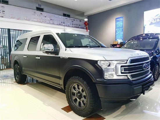 改装后的福特勇猛者第三排三人座椅可前后移动放倒平躺,更有一键式的灯光控制。福特F150皮卡做到越野性能,同时拥有了商务SUV的豪华与舒适,抛开外表,简直可以跟MPV媲美;同时整车的氛围灯加上高光镜面地板,更加凸显了他高端商务车的地位!