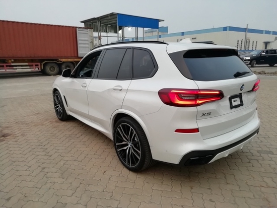 22款宝马X5外观相当霸气,外观设计硬朗犀利,整车尺寸比之前的车型略大,更大的进气口和延伸至前中央进气格栅的冰铜车底护板,虽然尺寸更大宝马一贯对称的风骨不失宝马X5的独特之处在其动感的线条轮廓中一目了然。一些最新的家族设计也被用于一些设计元素的创新。前格栅变化明显,更显修长,并与大灯融为一体。