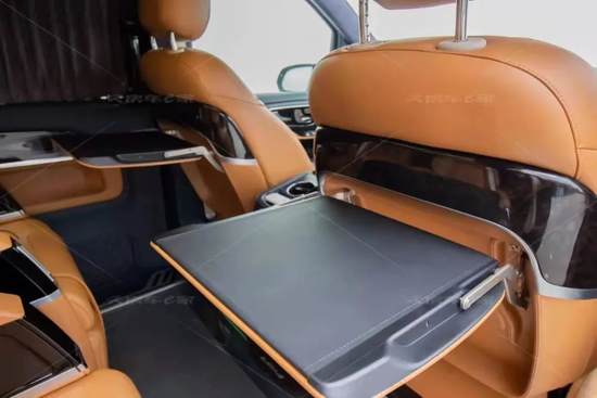 奔驰V260L改装VS980采用隔断式吧台,吧台中间镶嵌原厂四键八项物理按键和6.5寸电子触控屏,55寸巨幕升降电视,后舱独立空调系统,全车真皮包裹。整台车采用了前后隔断的设计,空间性稍差隐私性更好,便于商务接待的同时兼顾家用,定制风格采用经典的元素,宽大的航空椅配上舒适头枕,坐在上面就想美美睡上一觉。无论出游还是商务会谈都十分凸显逼格儿