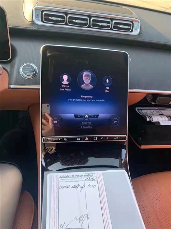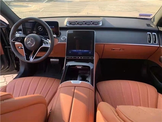 奔驰S500方向盘上的多功能按键全都升级成了带振动反馈的触控操作。12.8英寸可触摸OLED中央显示屏分辨率达1888x1728,内部搭载第二代MBUX智能人机交互系统,支持27种语言的语音助理、手势控制等丰富的人机交互方式,并支持OTA升级。