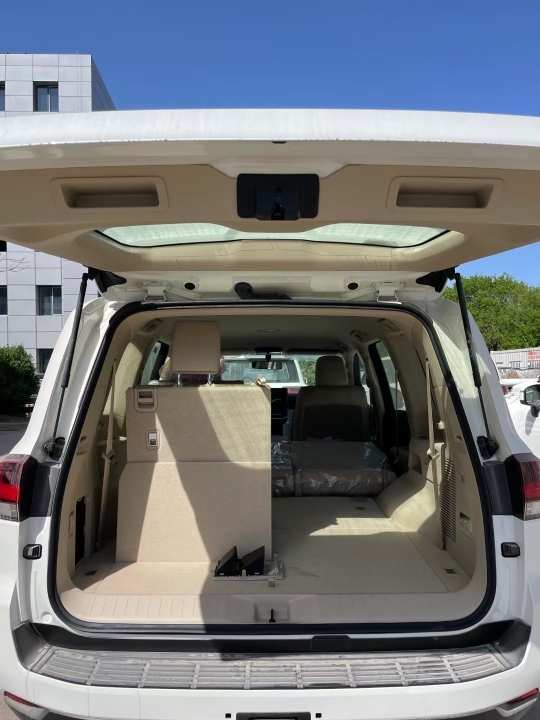 新款丰田酷路泽LC300座椅布局依旧是2+3+2的七座布局,座椅的选材精心考究,柔软度和舒适度大大提升,内饰颜色由原来单一的米色改成黑色和黑红双拼内饰,高级感突出。被诟病已久的侧置收纳三排座椅终于被改为不影响后备箱空间的底部收纳。乘坐空间保持了上一代车型的水平。