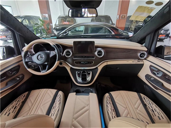 奔驰V260L尊贵加长版改装商务MPV7座,加装高顶改装,整车长宽高5370*1928*2100,新款奔驰V260L红木总裁版的高端,大气,匠心之作显的淋漓尽致。以下为奔驰V260L红木祥云版改7座高顶隔断商务MPV整车实拍,采用镂空大标、LED大灯、前置影像。