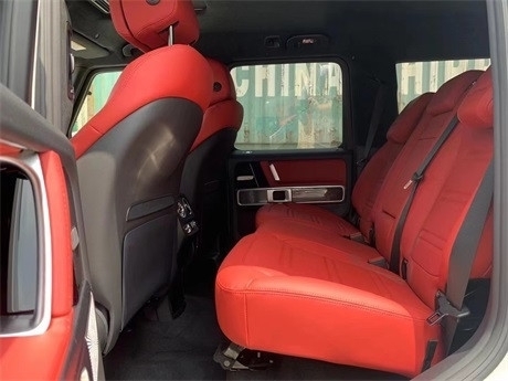 21款奔驰G550 美规(现车)配置:白车红内,豪华内饰包、加热Napa真皮方向盘,舒适座椅包、通风、加热、运动阻尼,四季脚垫、车身同色备胎罩