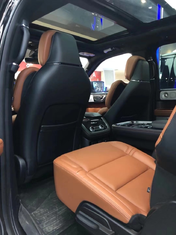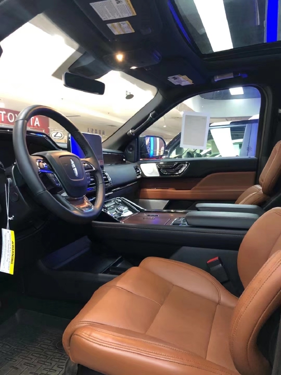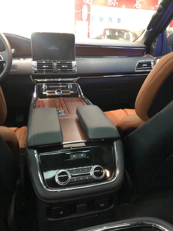 林肯领航员的内饰非常奢华,多功能方向盘,中控台的造型与宽大的车身相呼应,新车全部真皮包裹座椅,内饰采用桃木搭配设计,高贵典雅,加高加大的车身除了增加内部空间外,还给人营造一种尊贵典雅的感觉。最新林肯领航员新车采用了2+2+3的座椅布局,第二排采用了两个独立座椅,座椅内侧均配有扶手,舒适度超强。