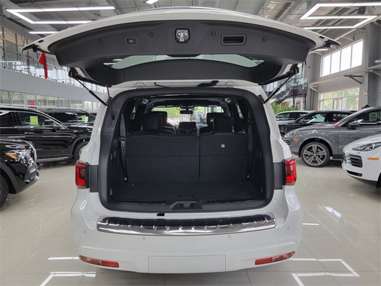 2022款英菲尼迪QX80采用2+2+3的7座布局,第二排采用独立航空座椅,在两张VIP座椅的中间有扶手,具备冰箱的功能,第二、第三排座椅可以完全放倒,提升容积,预计新车配备12.3英寸悬浮中控屏、优化车机系统、服务系统、车道引导功能的导航系统、支持无线互联、手机无线充电、前排座椅加热、智能巡航控制系统、高级音响、空调。