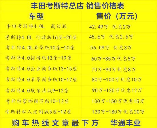 丰田考斯特销售热线:13811284111 魏先生 同微信