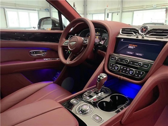 21款宾利添越配备了全新样式的三辐式多功能方向盘,整体质感良好,中控台中央悬浮式液晶屏设计,上方圆形出风口是宾利独有的“牛眼式”出风口设计。新款宾利添越内饰几乎全部被顶级的牛皮包裹,而且全部是由技术优异的工匠纯手工打造,辅以少量的木纹和金属装饰,华贵至极。