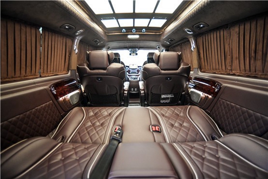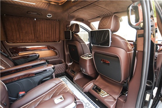 2022款奔驰威霆商务车配备了航空皮革多功能座椅,同时,由于客舱空间大,在当前定制的全分隔车型中,前排座椅,后排座椅与前排之间的分隔距离也是最大的,前排座椅具有6种功能调节,安全头枕,固定扶手,升降式脚凳以及通风,加热,旋转和气动按摩功能,沙发后排座椅,双滑轨向前和向后滑动,可倾斜180度,可用作床。