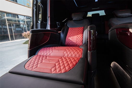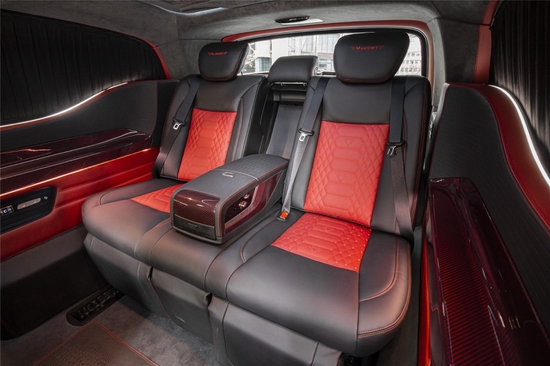 无论整体气质,还是细节做工,迈莎锐MV600赫迪都透射着埃尔法、LM等日系商务车无法比拟的品质感与艺术性。纵使车身整体依然维持低调内敛的曜石黑钢琴烤漆配色,但新增的红线碳纤维车身组件却将其由内而外散发的高雅属性毫无保留地展现出来。静谧雅致的氛围让这台特殊商务车看起来像极了不苟言笑的英伦绅士,充分佐证了创始人Kourosh Mansory先生对英伦汽车文化的诚挚热爱。