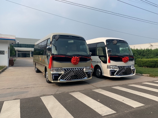 丰田考斯特改装从外观的设计上来说,丰田考斯特商务车豪华版为米黄金色,外观的设计简洁大方,丰田考斯特改装商务车则更加注重了对外观的美观性以及行车安全装置的衬托。车身增加中线,不会使车身的颜色单调,更增加了车身设计的层次感以及灵动感。在车头的改装设计上,色调不再单一,镀铬前格栅再加上醒目的镀金丰田标志,更体现出车头设置的精细美观。大灯以及雾灯均才有镀铬技术,增加车身的美观。