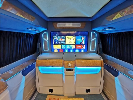 前后舱一键升降隔断搭载40寸互联网高清娱乐电视5.1环绕式声道立体音响,给您来一场视听级盛宴。整车三层隔音双层窗帘一键升降隔断,将您的出行隐私感拉到最满!细节方面,休闲娱乐凯旋而归怎么能不喝一杯呢?智能酒柜让您随时随地精神饱满!