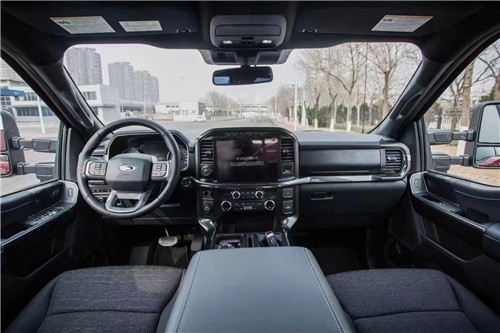 福特F150中控功能区域可分为三个小控制区,最上端为音响控制及导航控制,中间为收音机调节控制,最低端为空调及座椅加热控制,在内部空间的庞大基础上,福特也提供了非常具有舒适性与服务性的内饰配置,另外,新车还配备了一块大尺寸的全景天窗。