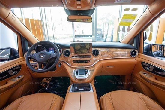 奔驰V260 (配置|询价)L爱马仕版车身经过加高,高度由原来的1920mm增加到了2080mm,长5.37米 ,款1.92米。圆满的车身尺寸为内部升级改造提供了充裕的空间,并且该车配有奔驰的9大安全系统,轻松应对各种复杂天气和路况。车门翻开的瞬间,由法国和德国设计师,精心设计的灯光别离爱马仕元素内饰的漂亮效果,瞬间让人眼前一亮。尊贵奢华感让人肃然起敬。