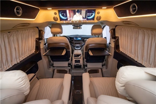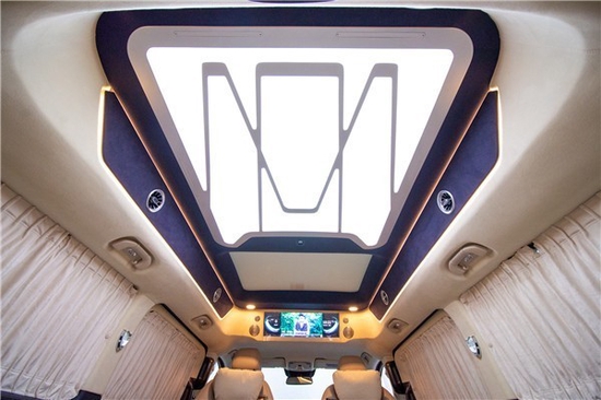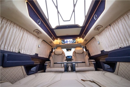 改装商务车以便酷炫的灯光效果,制成了密闭式顶篷的设计方案,促使气体的流动性及其视线的超前性上稍弱。而这个全新升级奔驰V260七座商务车双互动式超大型全景天窗设计方案,乘驾工作人员可依据车里要求开展通气自然通风,电动式操纵,遮光窗帘与总体车内饰色调相配搭,看起来优雅时尚潮流!