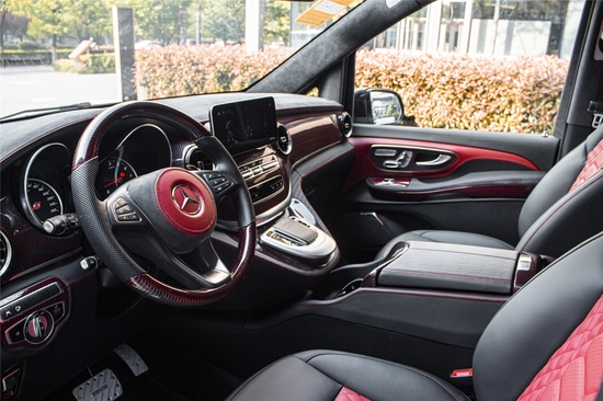迈莎锐MV600赫迪驾驶舱依照人体工学设计,意大利Mastrotto小牛 (配置|询价)皮缝制的正/副驾座椅,Alcantara麂皮绒包覆的控制台、窗框,嵌入红线碳纤维的真皮多功能方向盘、扶手箱等华丽元素都悄然改变着人们对传统商务车简约无华的固化印象。