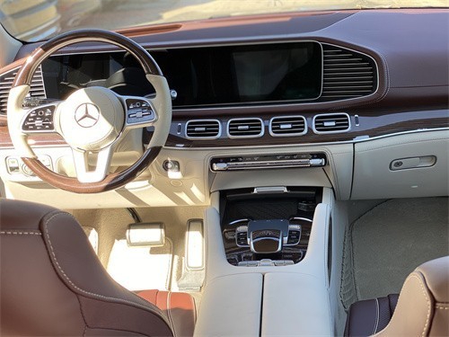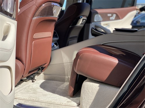 梅赛德斯-迈巴赫全新GLS 600同样采用双色设计,配备了全新造型的三辐式多功能方向盘,并搭载悬浮式液晶数字仪表以及多媒体中控屏幕