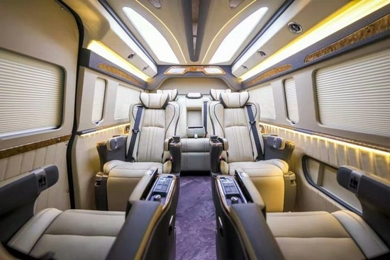 乘客舱配备了可360旋转的首长级航空座椅,拥有通风,加热,腰托等等功能,旋转过去之后再配备高档的办公桌版,提供了一个很好的娱乐空间或会议空间。充分体现了其人性化的设计以及对于乘车人员舒适度的考虑。