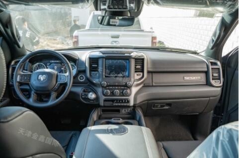 道奇公羊皮卡在内部设计上还是延续了美式那种比较粗犷的风格,规整的中控台设计看上去比较死板,但丰富的配置会让你不由得为其称赞。中控台的设计简洁硬派,符合公羊的气质。仪表盘底边有花纹,则更加凸显了这款车的文雅性。