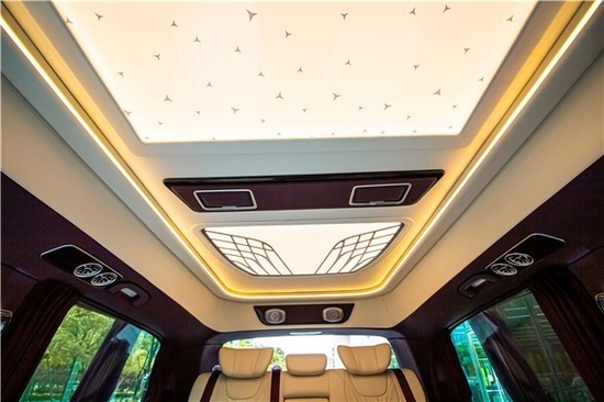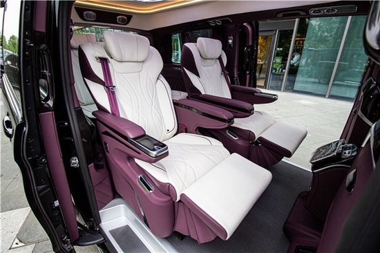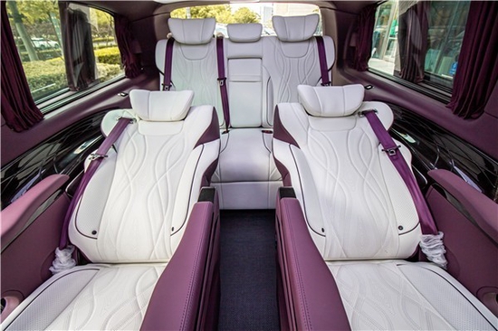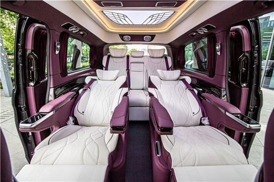 进口V250暮光紫顶部分采用成本相当高的 Alcantara包覆,并且保留了可开启的天窗和后部的顶灯,如果说这种豪华的氛围只是感性上的认知,那用理性的决定选择 V 级就体现在它的个性化功能上。舒适车厢 - 身心享受,尊贵独有 独有24寸液晶电视可连接手机 看电影听歌旅途更加的轻松愉快。