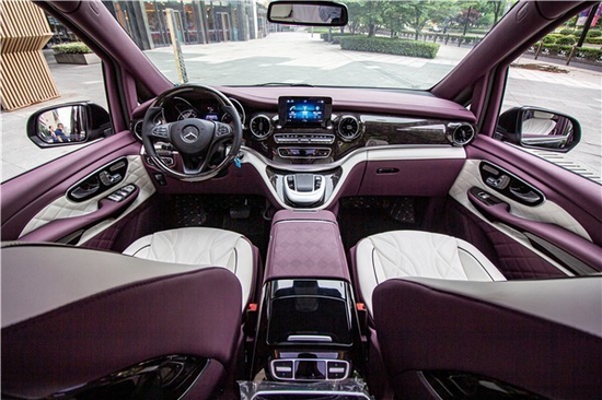 进口V250暮光紫的驾驶室也和其他相同车型有很大的不同,8.4寸中控液晶屏、TouchPad触控板、全新三幅式方向盘、气氛灯等细节共同打造驾驶舱奢华感。榆木纹进一步提升了内饰的品质感。COMAND系统触摸板,电动调节座椅 12升车载冰箱能在方寸间实现单点或多点触控操作,智能识别手指运动轨迹,无论是滑动、缩放,还是手写输入,都可快速识别并进行反馈。这个中控的设计在相同车型中也是独一无二的。