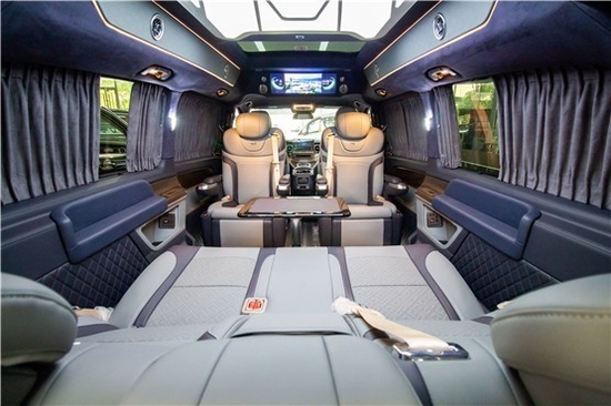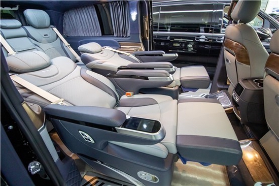 当远程打开附带多重开启模式的双侧电动滑门进入新款V级乘客舱,立刻就会被眼前一派精奢高雅场景深深吸引:全车隔音、隔热、降噪处理,私密绒布窗帘、Nappa真皮座椅、柚木拼花地板、双段式全景天窗相辅相成,共同营造出头飞机等舱级的尊荣华丽;比较难能可贵的V级内饰精装由梅赛德斯·奔驰官方授权,这就意味着无论你喜欢何种风格,都能在天马行空的高定版V级里找到心之所“好”。
