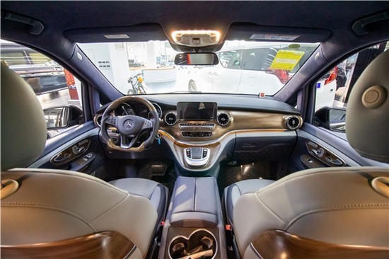 新款奔驰V级承继S级 (配置|询价)的人体工程学驾驶舱让轿车用户倍感“亲切”,不论空间亦或视野皆傲视同级竞品;带换档拨片的三幅式多功能真皮方向盘握持感极佳,上面井然有序排列着许多功能键,像蓝牙电话、定速巡航、音量控制、电台切换等一系列功能无需低头查看便能轻松操控;豪华一体式木纹装饰面板中央悬浮式8.4英寸全点触摸屏科技感油然而生!整个驾驶舱既保留了西方流线型基本格调,又满足了东方美学系的对称需求,可谓中西合璧之“典范”。