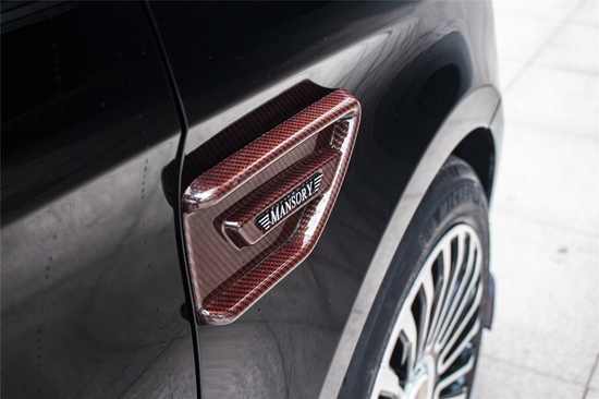 车身对碳纤维的运用也丝毫“不落下风”:鲨鱼鳍扰流板、侧裙、门把、后视镜壳等部位尽显MANSORY“碳纤之王”的稀世风采。