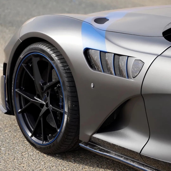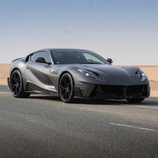 从车头:前保险杠带进气口、前唇、出风口格栅、大灯罩;车身:侧裙、侧面板、翼子板带出风口、后视镜壳等区域都能清楚地看到这种珍稀材料打磨而成的空气动力学组件。较为出乎意料的是,原厂812的引擎盖T形饰板虽然全部换成了锻造碳,但为了令其与车身契合度更高避免过度张狂,MANSORY迈莎锐颇有“心机”地将机盖喷涂上哑光灰漆做出一个“不可视”效果与车身融为一体。这波操作可谓秀出天际,或许有不谙事理的车迷会质疑MANSORY这么做的意义,但当他们了解到碳纤维具有:轻量、坚固、耐腐蚀、抗拉伸、耐高温等大量优秀属性,自然会瞬间醍醐灌顶。