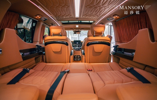 MANSORY迈莎锐MV600全车隔音、隔热、降噪处理,首创的一体化环舱格局让车内所有人员都能体验到同等宽敞的空间和完美的灯光视野。精选意大利Mastrotto小牛 (配置|询价)皮与Alcantara环保麂皮绒联袂打造的座椅、地毯、面板、内壁、顶棚等区域营造出鼎臻奢雅宁馨氛围的同时,也将MANSORY三十年如一日精益求精的匠心品质诠释得淋漓尽致。